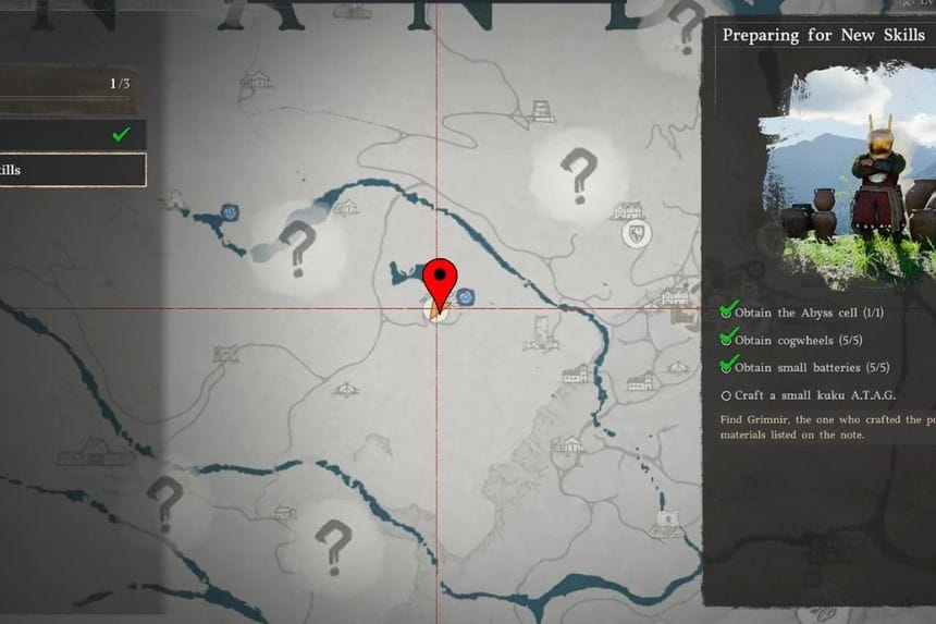 The final item you’ll need is the blueprint for the Small Kuku A.T.A.G, which requires completing the “Preparing for New Skills” quest. Once obtained, craft the Small Kuku A.T.A.G, then go to Grimnir’s Kuku Shop to craft the High Mobility A.T.A.G Mount.