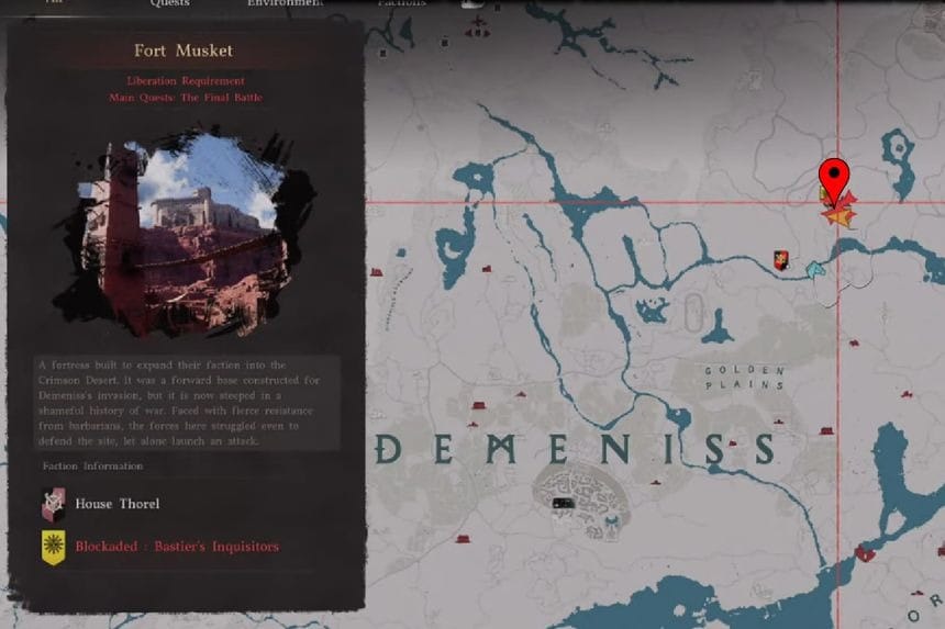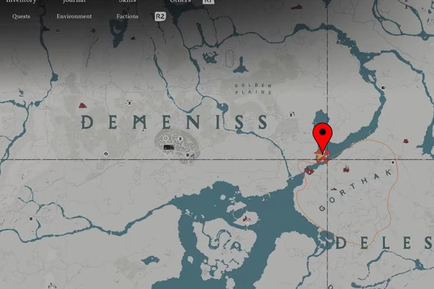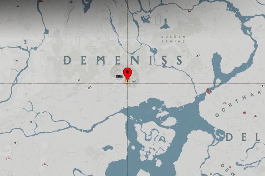 To get Demeniss Royal Guard Shield, head over to the marked location, and you’ll come across the Church of East Demeniss. Just opposite to the church, you’ll find a statue in front of which there is an entrance leading to the Church of East Demeniss Chambers. Follow the straight path, then turn right, and you’ll come across a secret entrance that’ll open after you’ve pulled the lever on the right.
