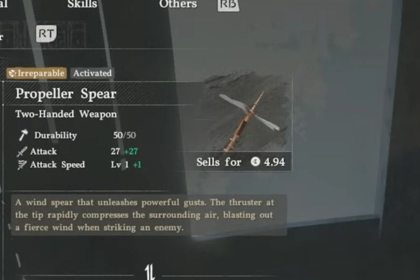 You can find the Propeller Spear located at the bottom right corner of the map. When you reach the area, look for the blank space in the base. From there, climb the watchtower located on the left side. At the top, you will find a door. Climb the stairs, then go past the boxes and cannons. At the end of the path, you will find the Propeller Spear located on the ground with three cannonballs.