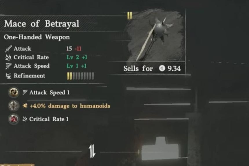 The Mace of Betrayal is found inside a port, north of Hernand. Climb up the entrance tower and enter the wooden room from the back of the tower. Inside the wooden room, you will find the Mace of Betrayal lying on the ground.