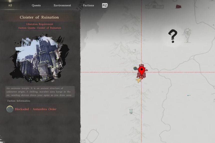 South of the Silver Wolf Mountains, you will find the Cloister of Ruination. Jump down the big hole in front of you to reach a platform. Behind one of the pillars you will find a cave. Enter the cave to find Atumbra’s Eye near a skeleton.