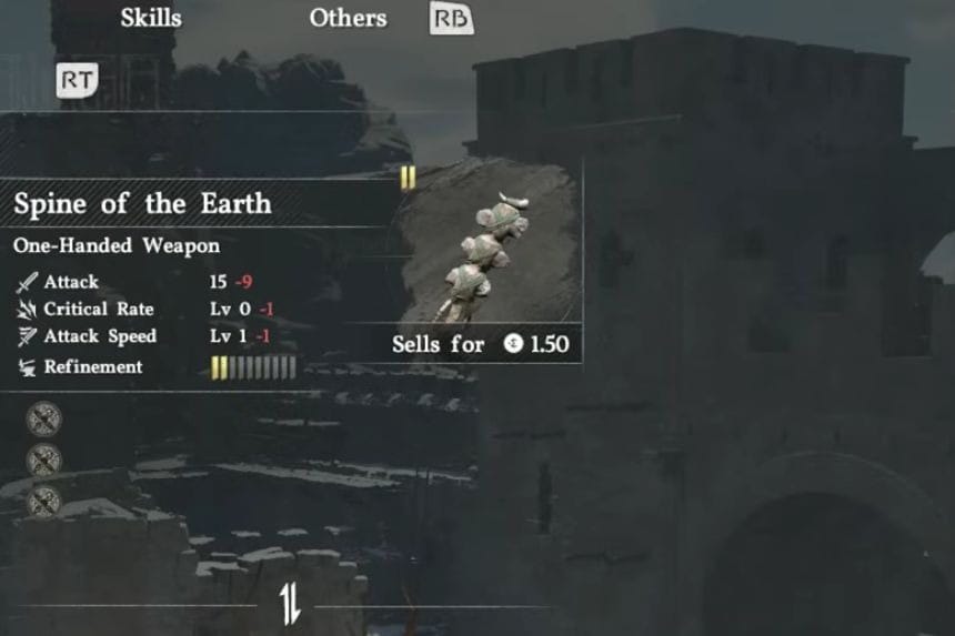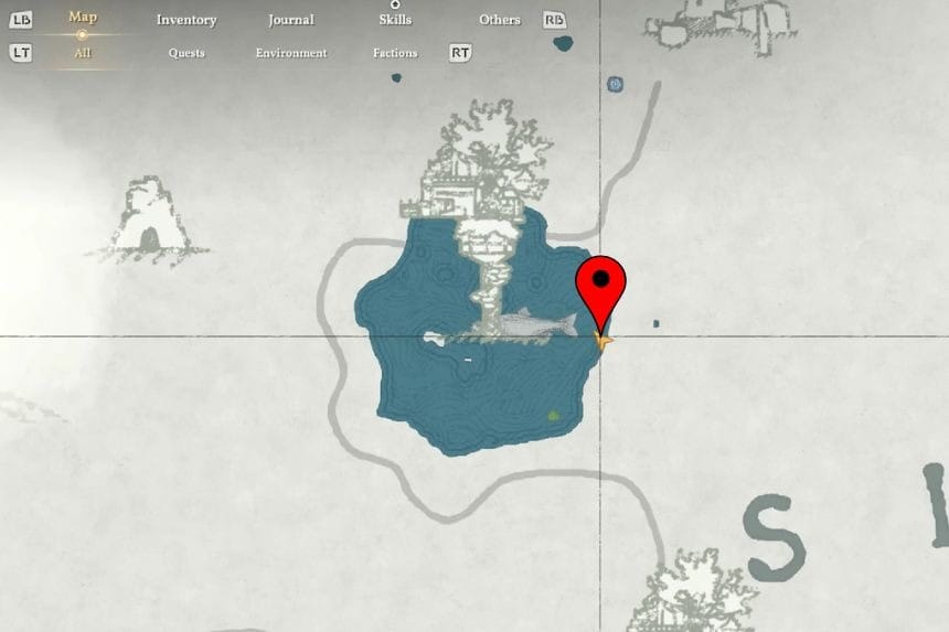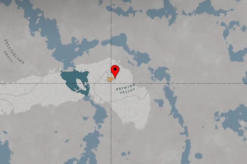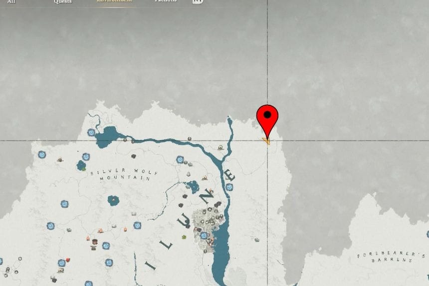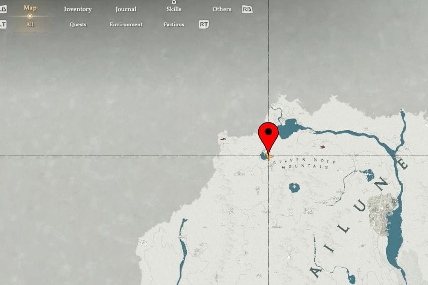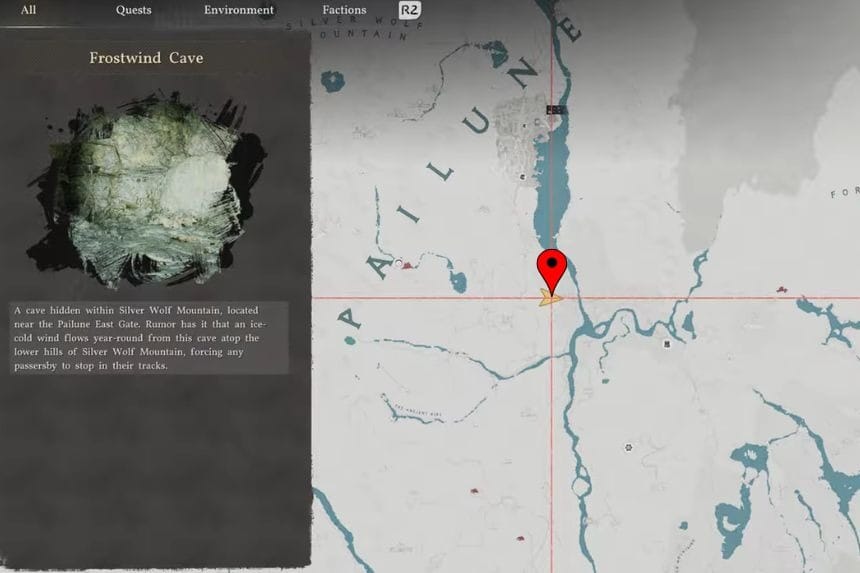 To get the Chillfallen Sword, you’ll need to go to the Argent Peaks in the western part of Pailune. Once you reach the marked location, follow the path on the right to reach a narrow passage that will take you to an open area where you’ll be able to find the Chillfallen Sword on the side.