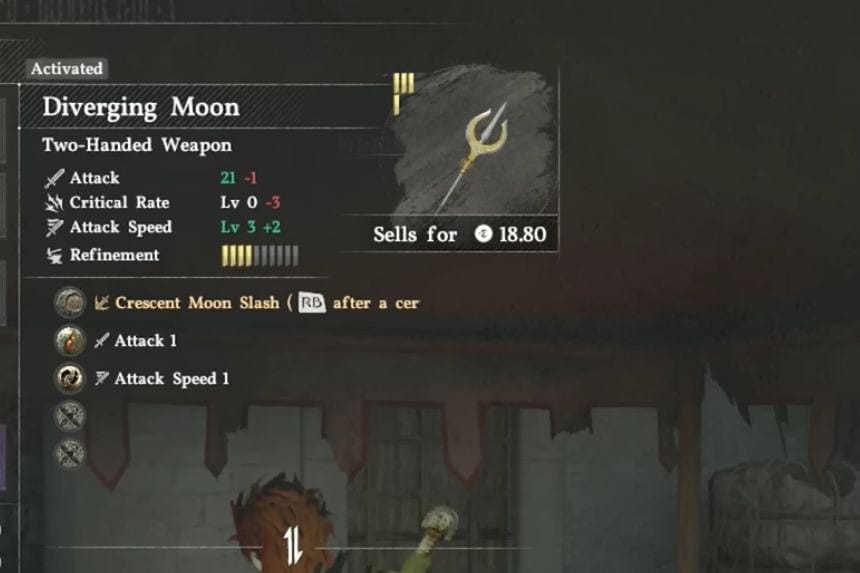 You can pick up the Diverging Moon weapon in the Southern Court of Demeniss without having to go through any long or complicated quest first. Once you enter through the main gate, turn left right away and look around carefully. Head toward the tent in that area, and you will find the weapon there ready to collect.