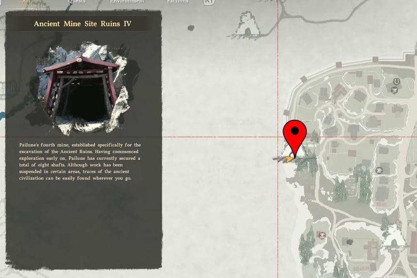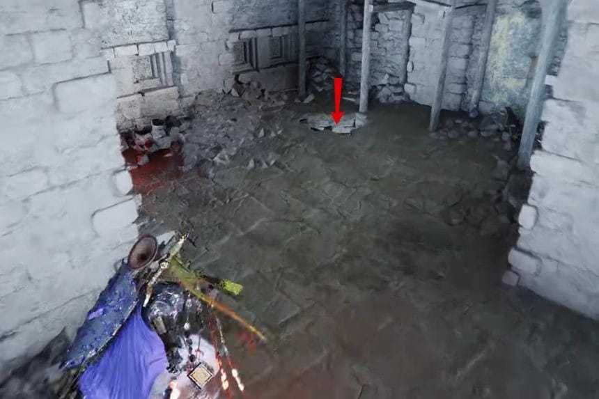 To obtain the Golden Knotted Ancestral Bow, you’ll need to head toward the area around Pailune and make your way to the marked location. Once you’re close, look for a moss-covered entrance that blends into the surroundings and enter the tunnel. Inside, move carefully through the ruins as the path is filled with traps.