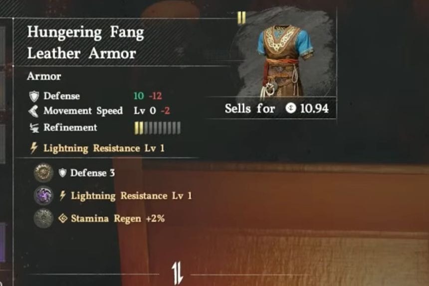 For the Hungering Fang Leather Armor, head to Ancient Mine Site Ruins 6. Use the Force Palm to break the breakable walls and move forward to find a chest. It is hidden inside the ruin and you need to carefully search the area.