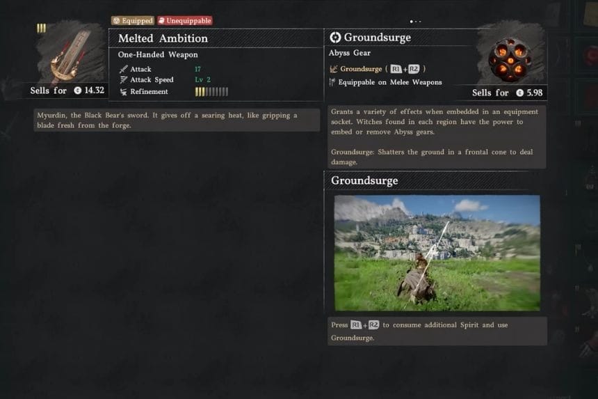 To get Groundsurge, it’s important to note that you have to get Melted Ambition first. The only way to get Melted Ambition is to defeat Myurdin during the main quest in Chapter 7, which is in the Decisive Battle. After the battle, a cutscene will be shown. After the cutscene ends and you control Oongka, you will get the reward.