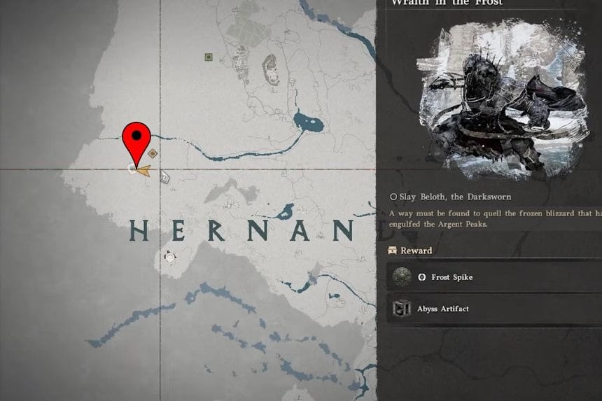To collect Frost Spike, you need to defeat Beloth, the Darksworn, which is located inside the Hoenmark Ruins. The fight is very risky because Beloth is strong enough to take your life in a single hit if you are not prepared for the fight. Before entering the fight, it is recommended that you use the Kuku Cold Resistant Armor and the Frostcursed Plate Cloak, which will help you survive the harsh conditions and damage in the area.