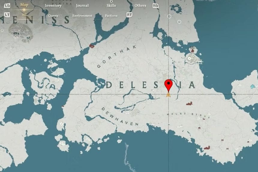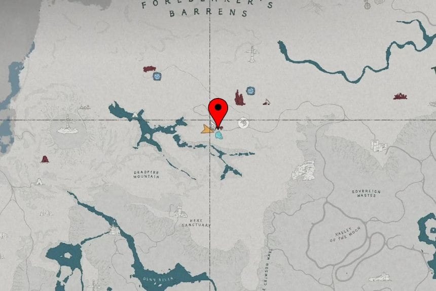The Odeck’s Protector Plate Helm is found above Demenis, near the river. From the fast travel point, face north and look for a strange-colored rock on the mountain. Use Focused Force Palm to destroy each glowing orb. There are multiple orbs, and you will need to destroy them all to destroy the wall. After you destroy the wall, enter the cave and open the chest to get the helm.