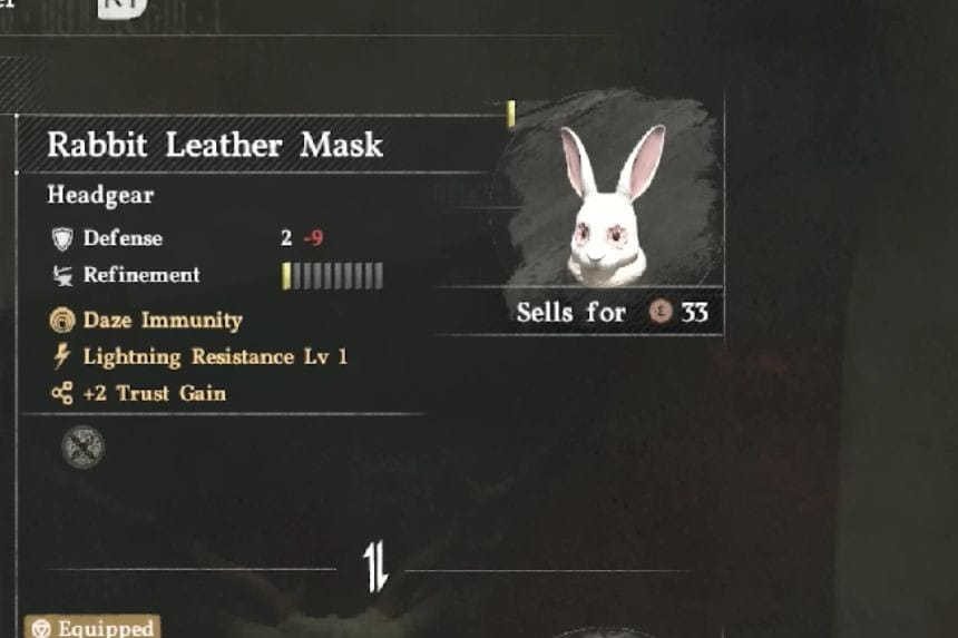 When the big rock is out of the way, go down through the newly opened space near the smaller crane area, then go inside to find a treasure chest, and inside you will find the Rabbit Leather Mask.