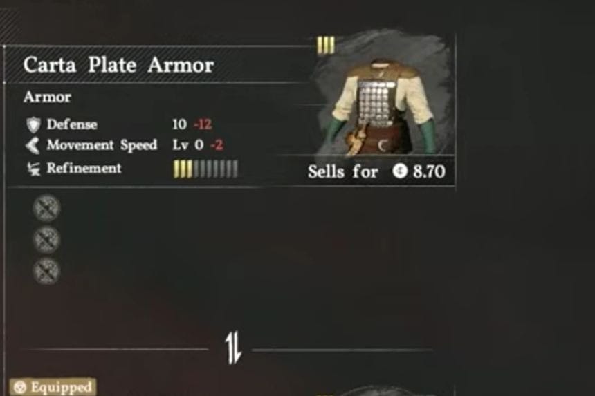 The Carta Plate Armor is inside a small building located just west of Rustfield Scrapyard. The building looks like a tower, so climb it and enter from the upper floor. Inside the room, you will find a chest containing the Carta Plate Armour.