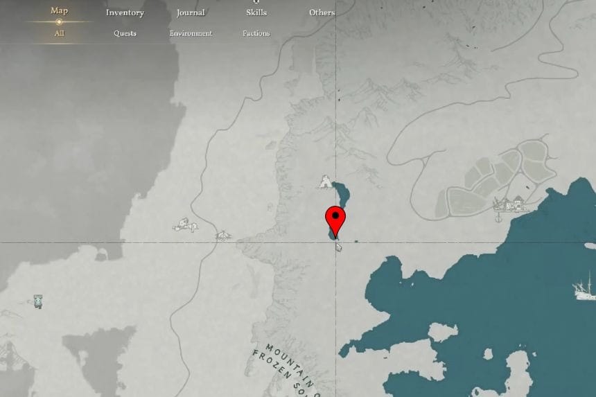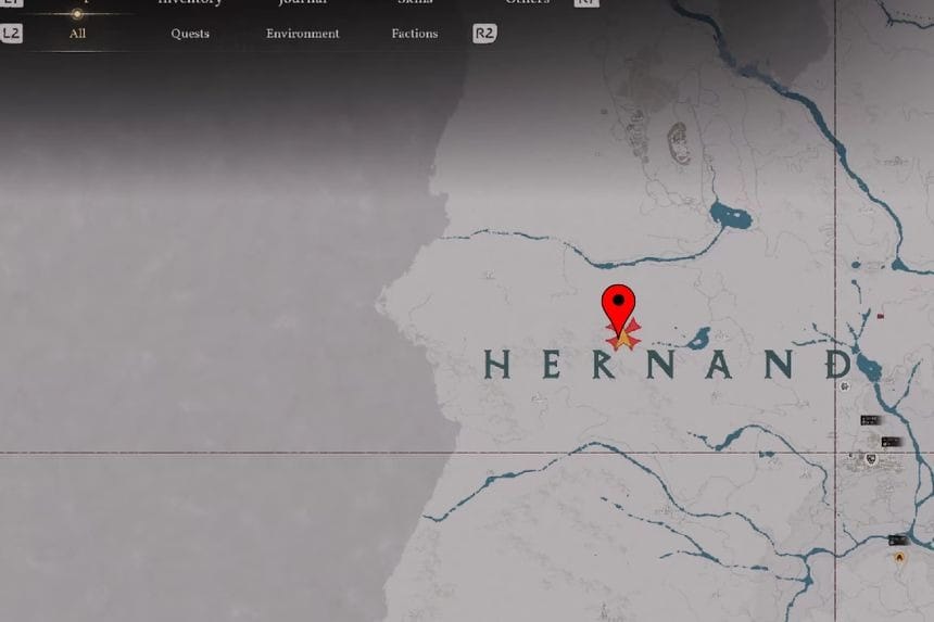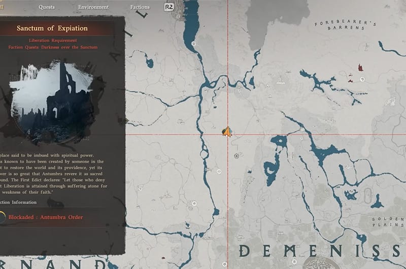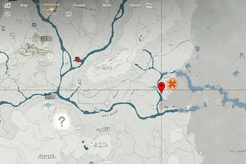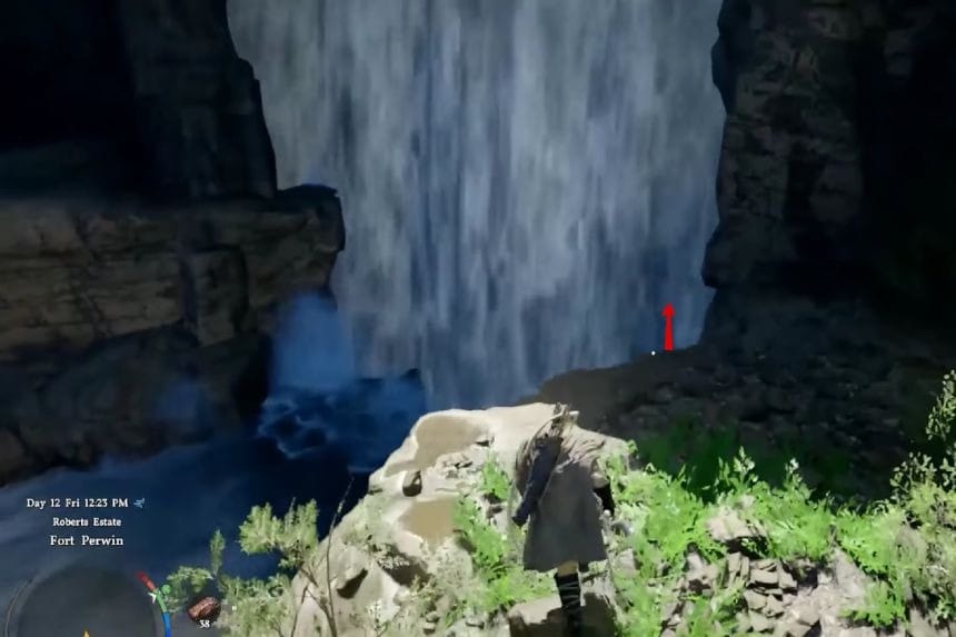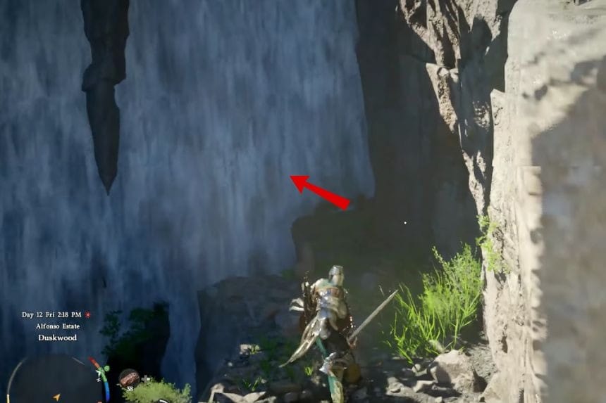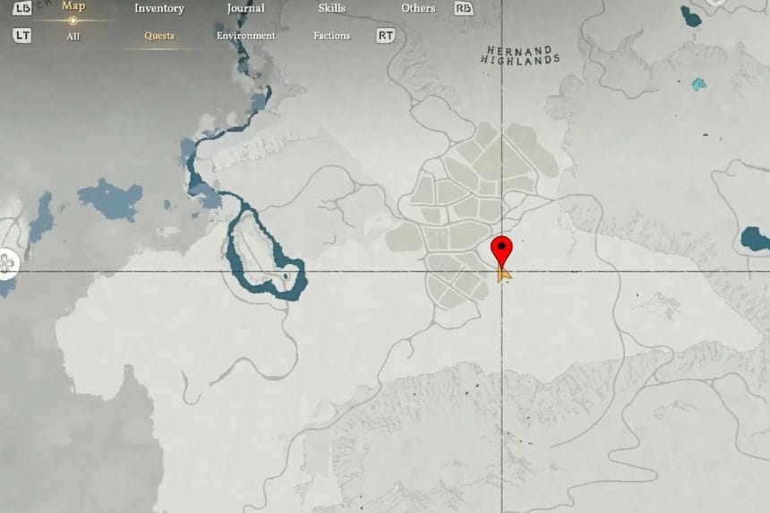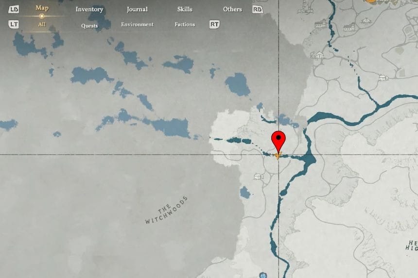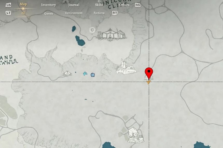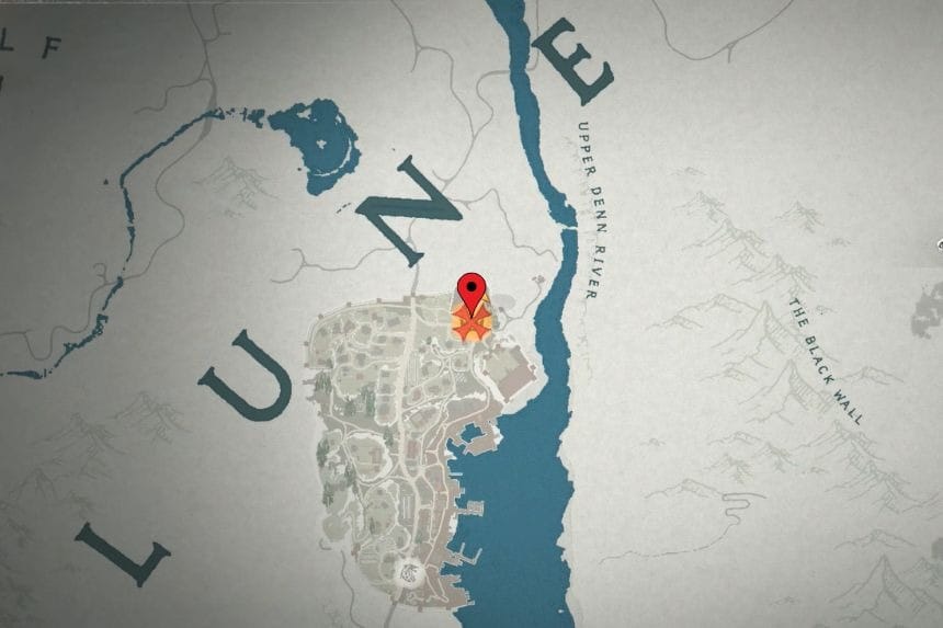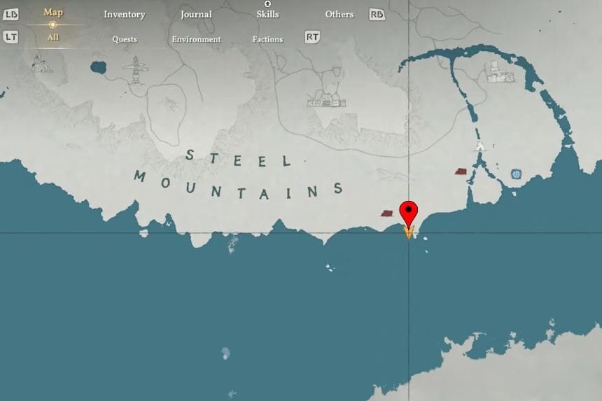 You get the Survivor’s Solitude from a chest hidden behind a waterfall that appears if you follow Lake Kharonso. The waerfall is exactly east from the Scholastone Institute as shown in the map above. To get to the waterfall, go to Lake Kharonso and follow the river up. Once you reach the location, climb up to the waterfall and perform a charged stab on the waterfall, which will allow you to get to the other side. Loot the chest to get the Survivor’s Solitude.