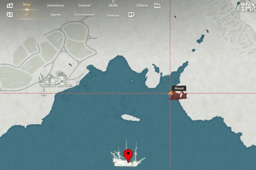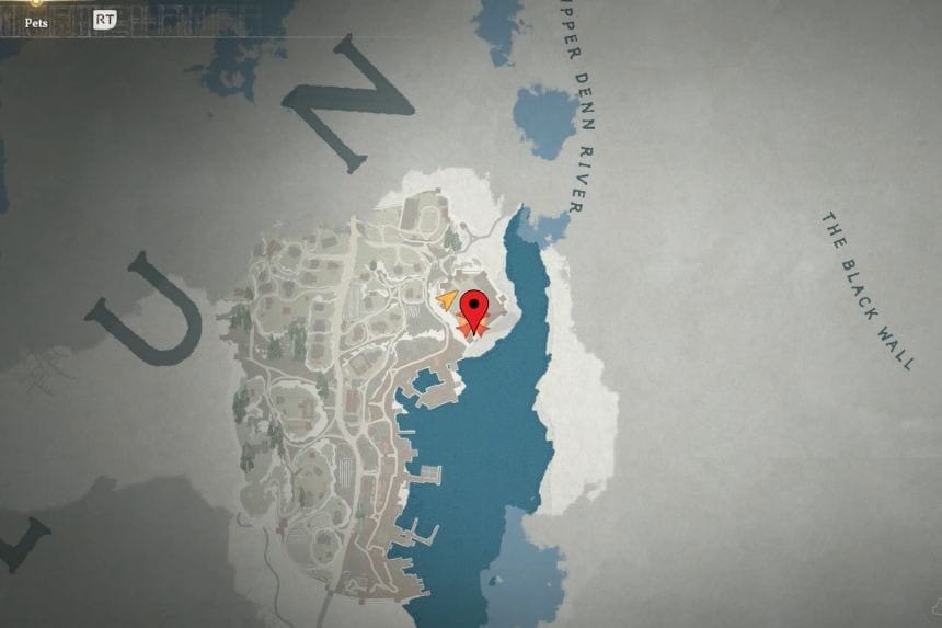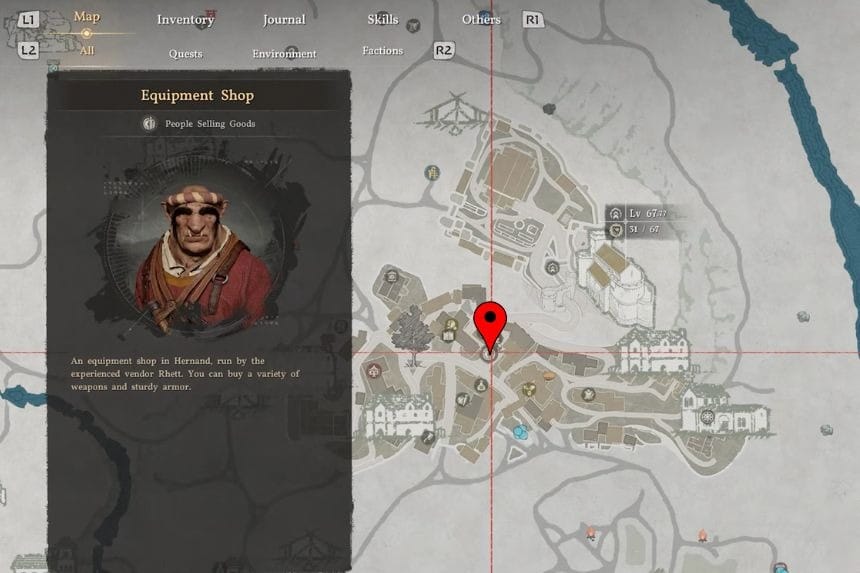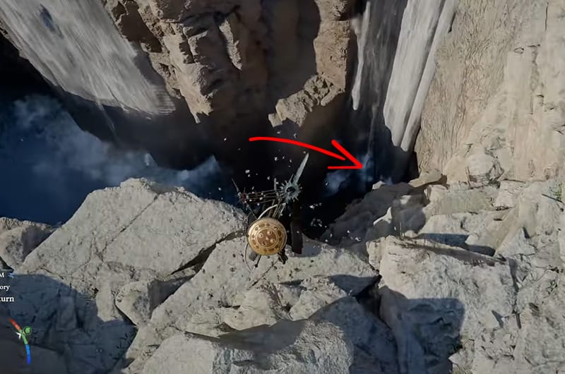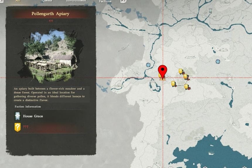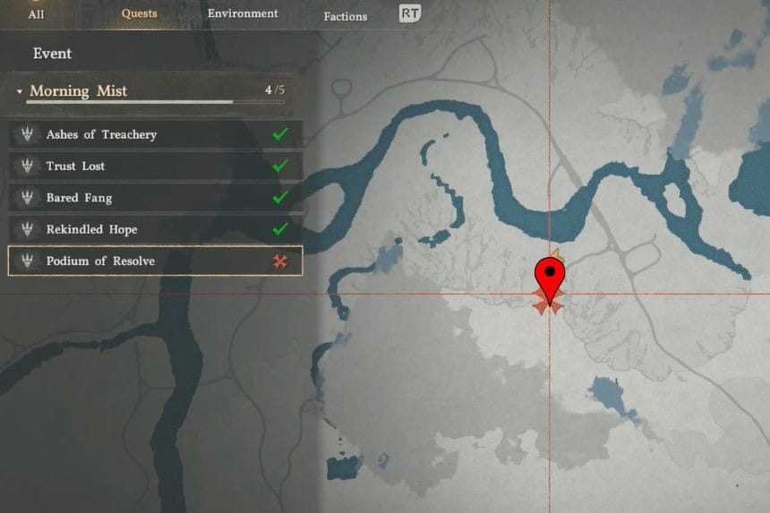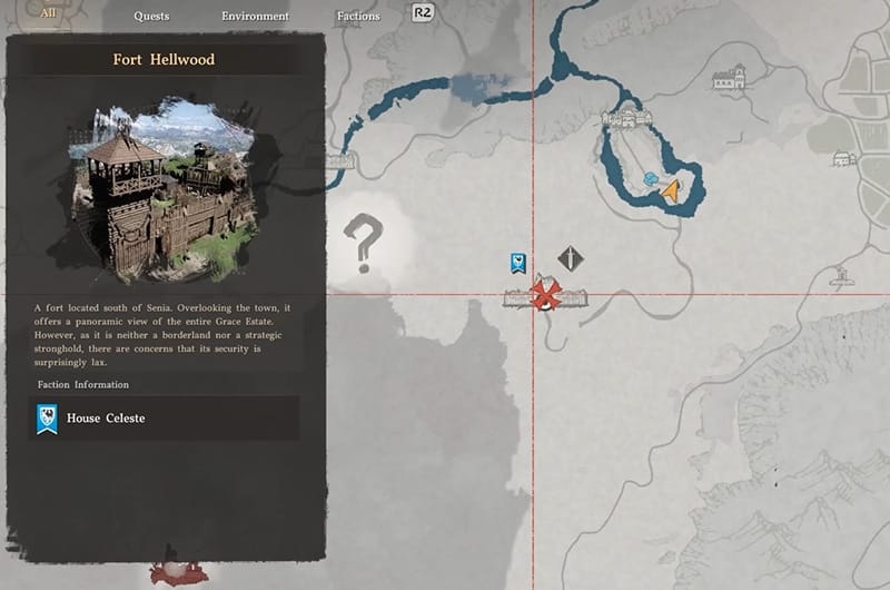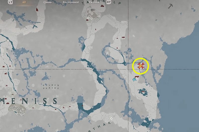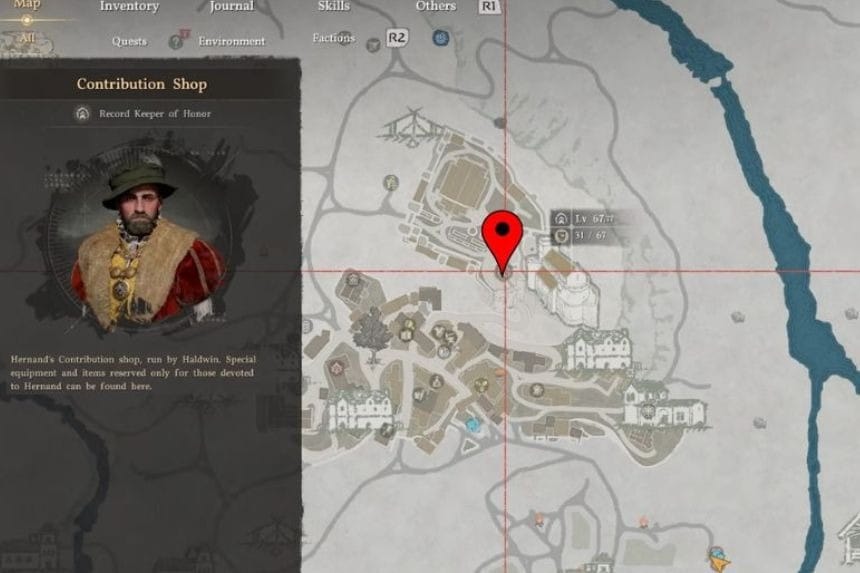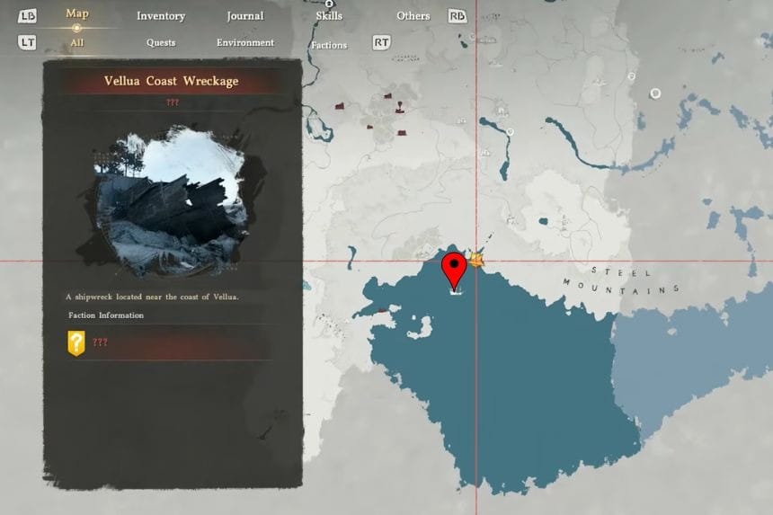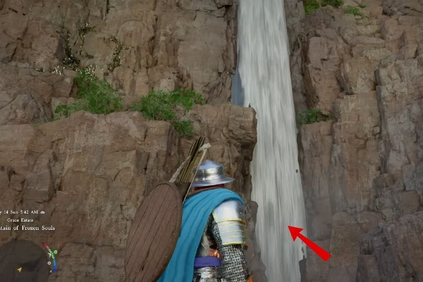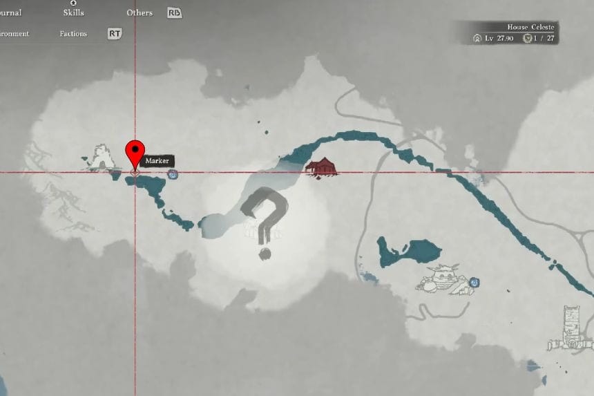 You get the Survivor’s Solitude from a chest hidden behind a waterfall that appears if you follow Lake Kharonso. The waerfall is exactly east from the Scholastone Institute as shown in the map above. To get to the waterfall, go to Lake Kharonso and follow the river up. Once you reach the location, climb up to the waterfall and perform a charged stab on the waterfall, which will allow you to get to the other side. Loot the chest to get the Survivor’s Solitude.