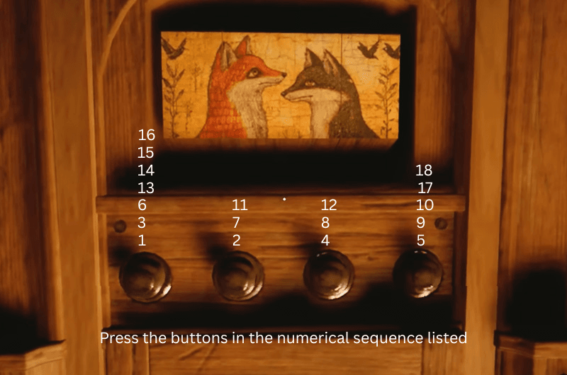 Interact with the strongbox in the room and it will reveal a puzzle. The puzzle requires 18 steps to solve. The above images shows the order in which you need to press the button to solve the puzzle and get the reward.
