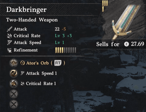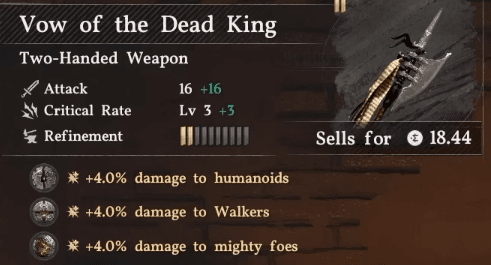 You will get this in the Sanctum of Absolution in Chapter 5, after defeating the boss in this area. It is a two-handed sword, rank 4, and comes equipped with Wound of Darkness, which will send out a projectile wave whenever you use “Turning Slash.”