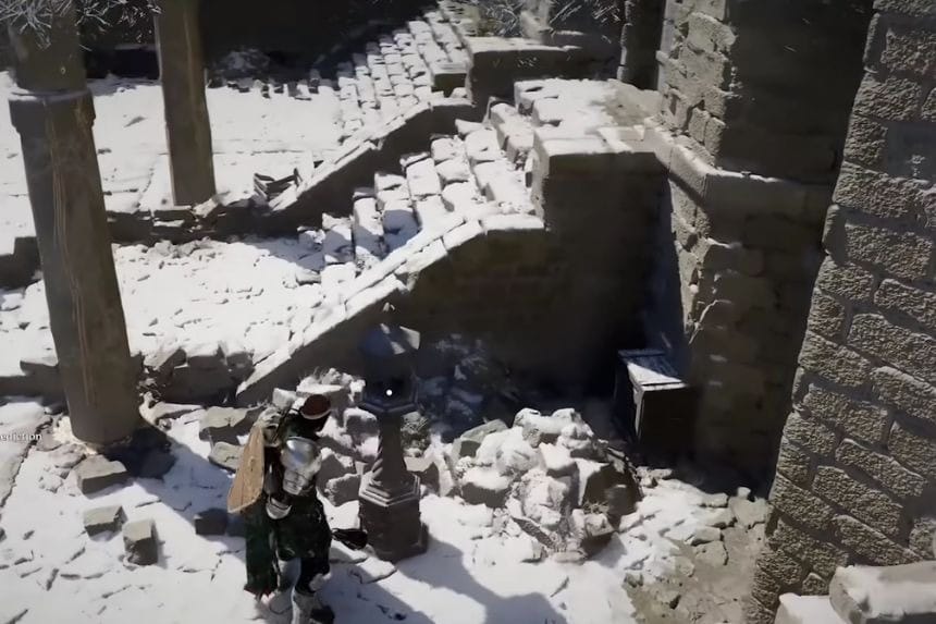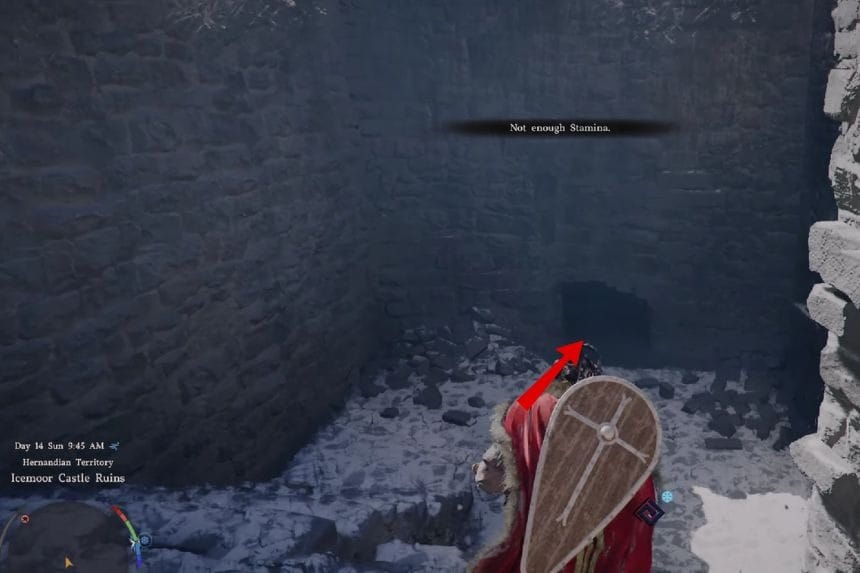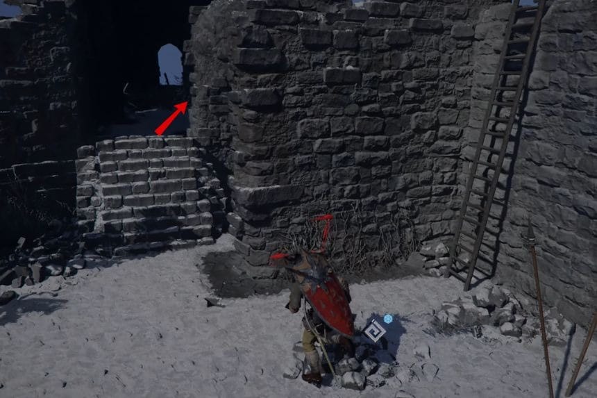 To get the Tammaso Guard Dagger-Tipped Spear and Sydmon Spear, you’ll need to go to the Icemoor Castle once again. Once you’re at the marked location, go right, and inside the ruins. There, you’ll get Tammaso Guard Dagger-Tipped Spear stuck on the left wall. The Sydmon Spear too, can be found stuck on the wall there.