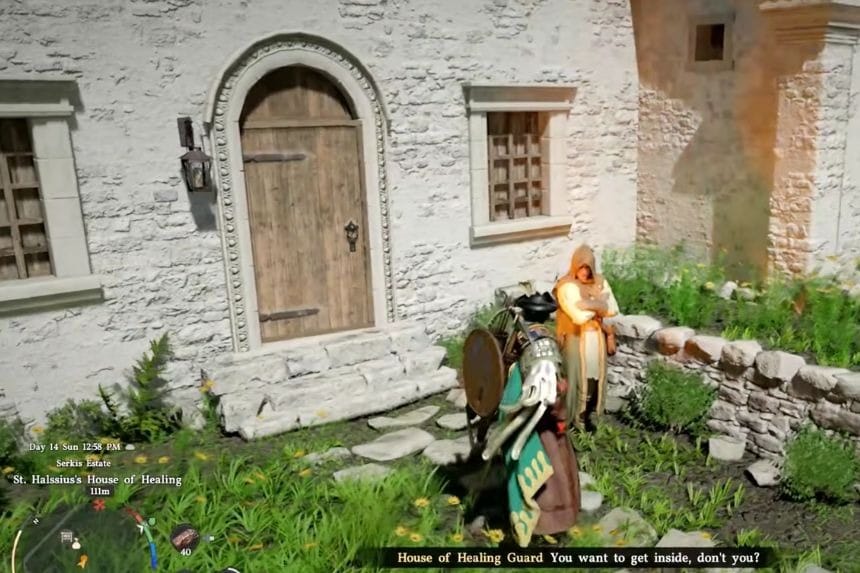 The Hwando is a special two-handed sword located in a side building near Lioncrest Manor. To get there, you need to go to the Back Alley Shop and purchase the key from there for 30 coins. After that, go to Lioncrest Manor, which is located northwest of the town. When you arrive at Lioncrest, you will notice that there are a lot of guards in the area.