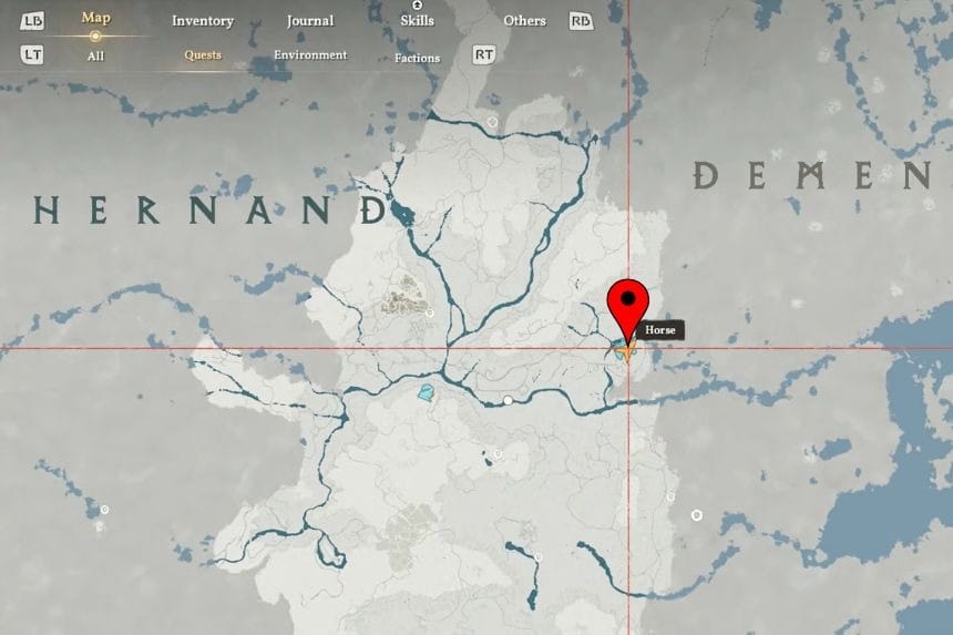 To find Rokade, you need to travel to the South of the map, near the Steel Mountains. Check out the above map for guidance. The location has bandits and they will interfere as you try to tame the horse, so be aware of that. Rokade is a black horse and quite feisty. If the horse does not spawn for you in the first try, go do some quest far away and return to the location.