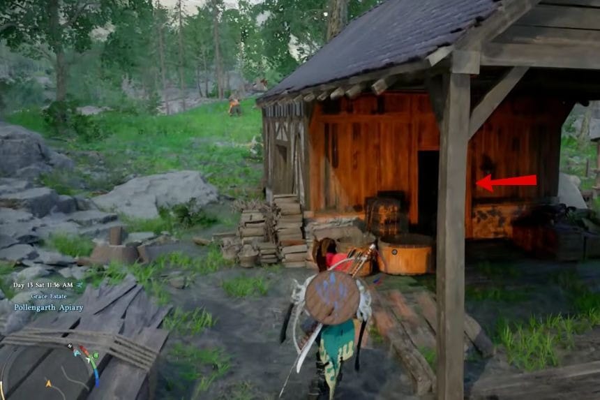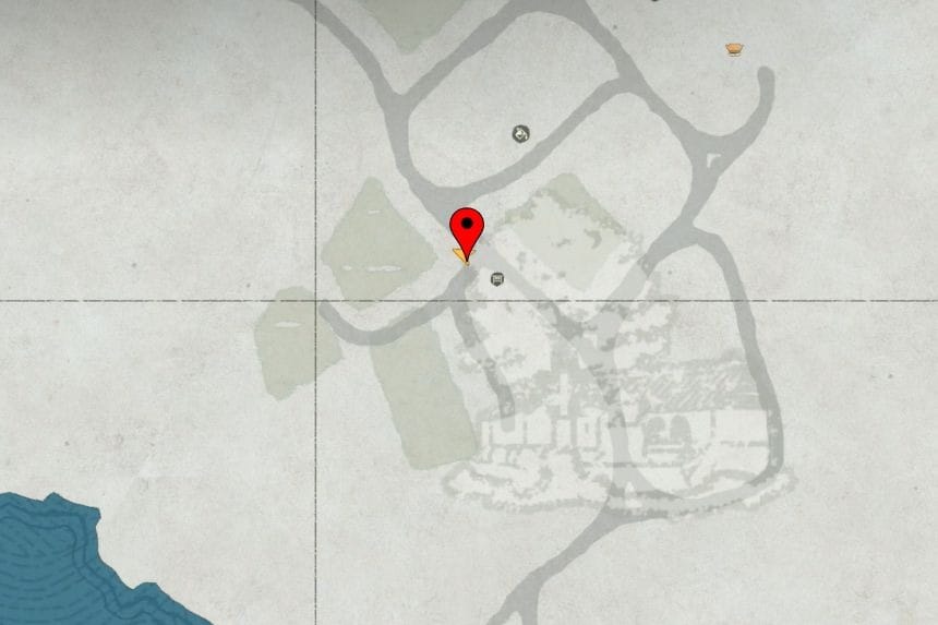 To get the Volono Sword, go to the location marked on the map above. You will find a camp in front of you. Take a right turn towards the flower bed to find a tree stump near a small water pond. On the tree stump, you will find the Volono Sword.