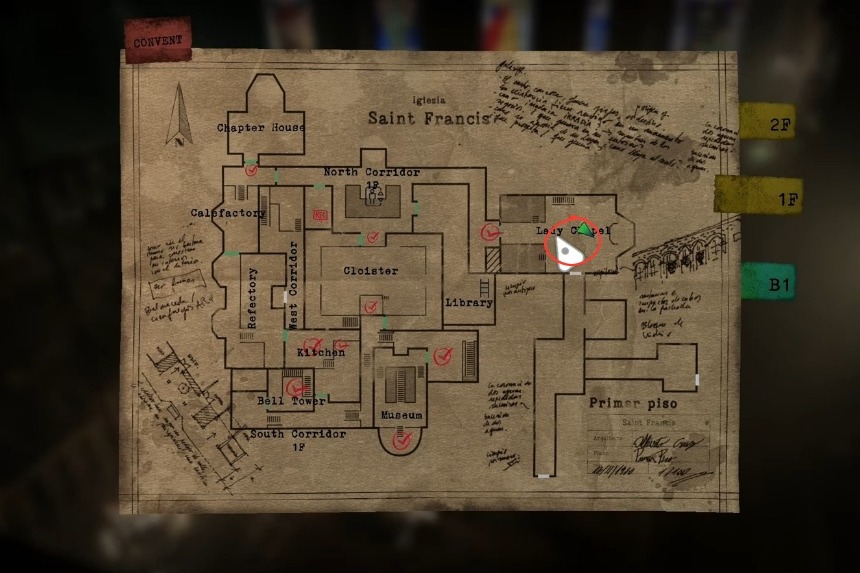 After defeating the Iron Maiden, access the upper library area through the Chapel of the Virgin Mary and you’ll come across an air tank that is compressed. This upgrade helps increase your nail gun’s firing speed.