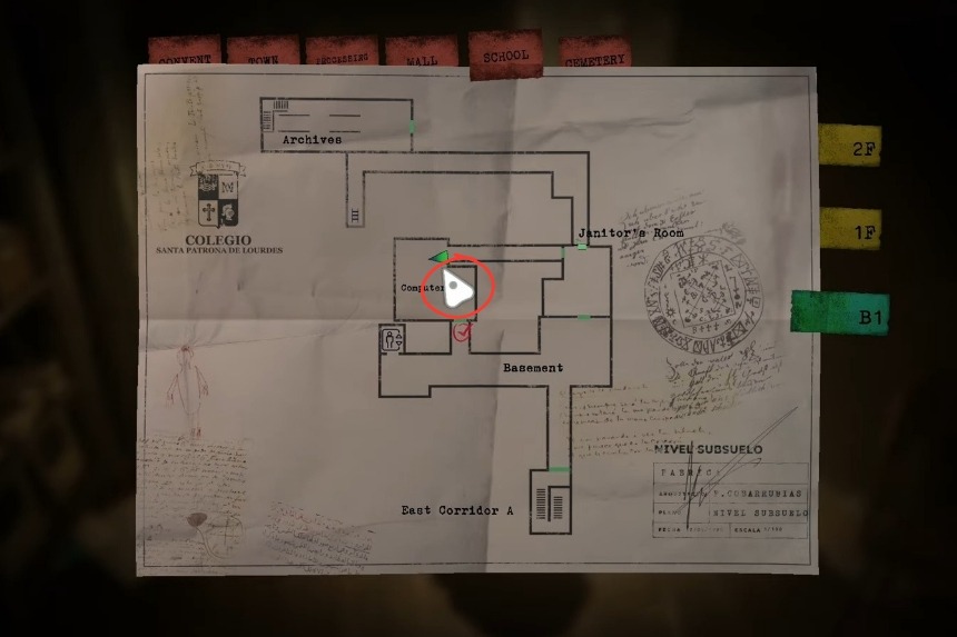 In order to get this upgrade, you will need to get the combination key first. For this, you’ll need to progress through both the Real and Other World when visiting the School. A good place to start would be the Computer Lab, where you’ll need to deal with some acid-spitting enemies. Once they’re dealt with, carefully assess the key to note the symbol order.