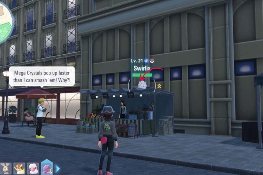 In Pokémon Legends Z-A, Swirlix can be found in Bleu Sector 5 during the day. It usually perches on wooden boxes near the “5” on the map. If it doesn’t appear right away, you can advance time by resting on a bench outside a Pokécenter and check again the next day. Like Spritzee, it doesn’t appear in Wild Zones.