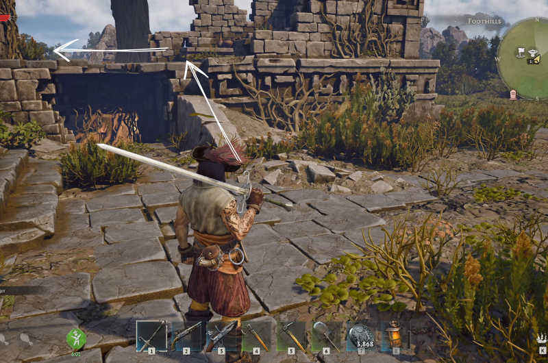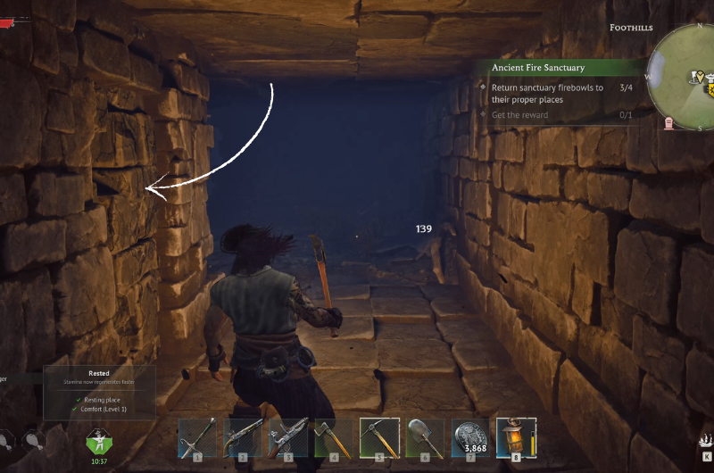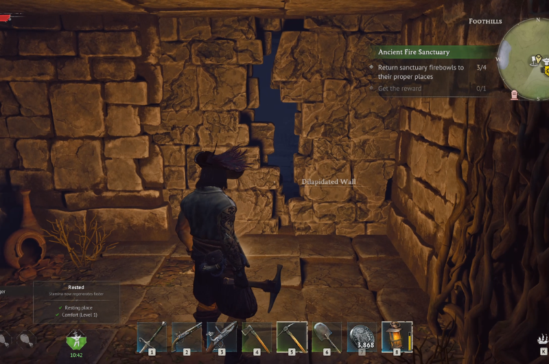 Then come out to the center of the ruins and head to the marked room as shown in the above image and you’ll notice a dilapidated wall to your left, break it using a pickaxe.