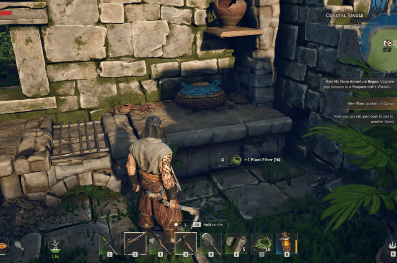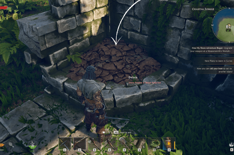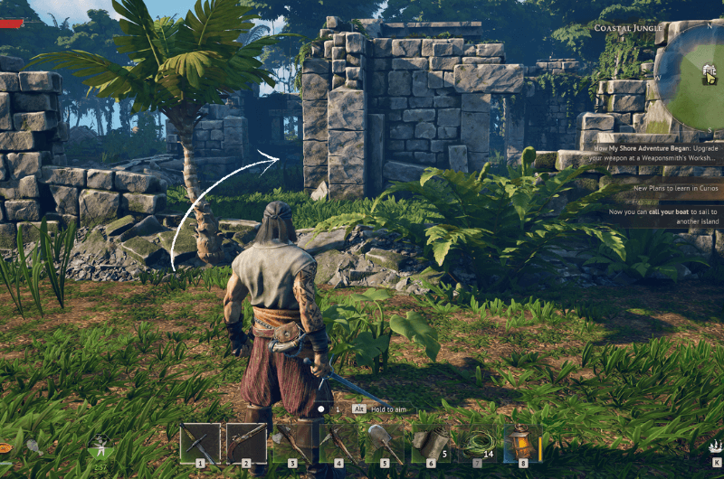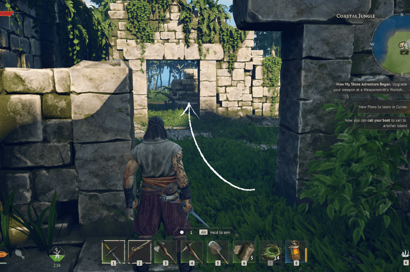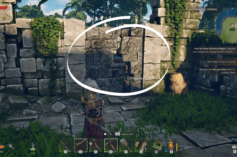 Head to this location on the map as shown in the above image, you’ll reach the ancient ruins. This place will be crawling with wild boars, I would recommend clearing them because they are relentless and also killing them gives you a rough hide, which you are going to need if you’re looking to craft the survivor’s clothing.