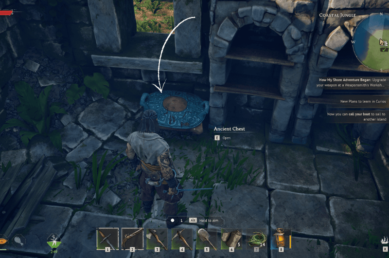 Head to the marked room in the ruins as shown in the above picture, you’ll notice the ancient chest lying on the ground in the open.