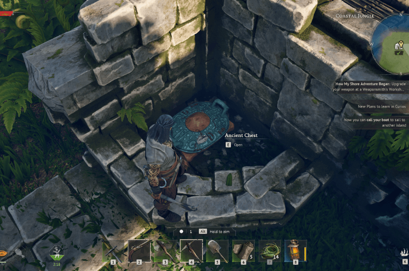 You’ll notice that it’s covered under the debris, you’d need a pickaxe to break the debris to claim the contents inside the ancient chest.