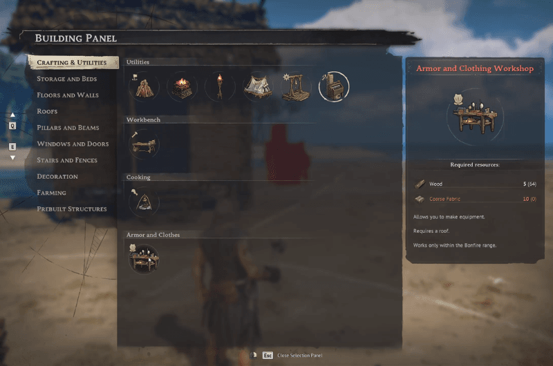 But to craft the survivor clothing, you need to build the Armor and Clothing Workshop first and it must be under a roof to be able to use it. So, if you haven’t built a home yet, now’s the best time to do it. You can check out prebuilt structures that you can build in the build mode, you just need lots of plant fiber.