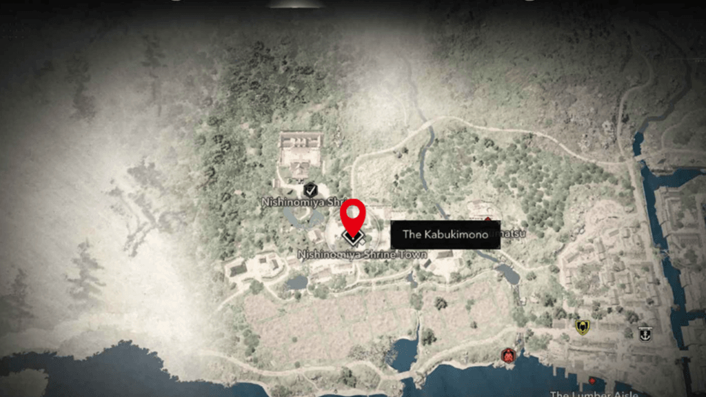 From there, go directly east, and you’ll spot the quest marker just below Nishinomiya Shrine. Talk to the NPC with the quest icon above them, and your objective bar will update with a separate circle listing all the Kabukimono.