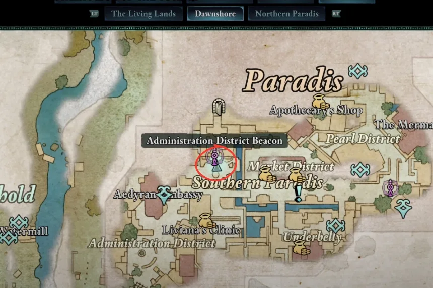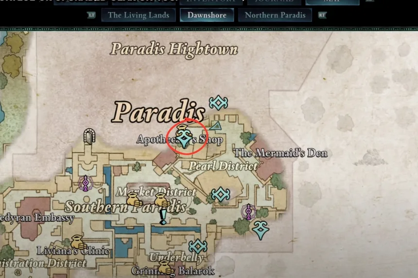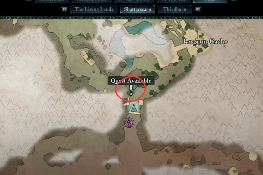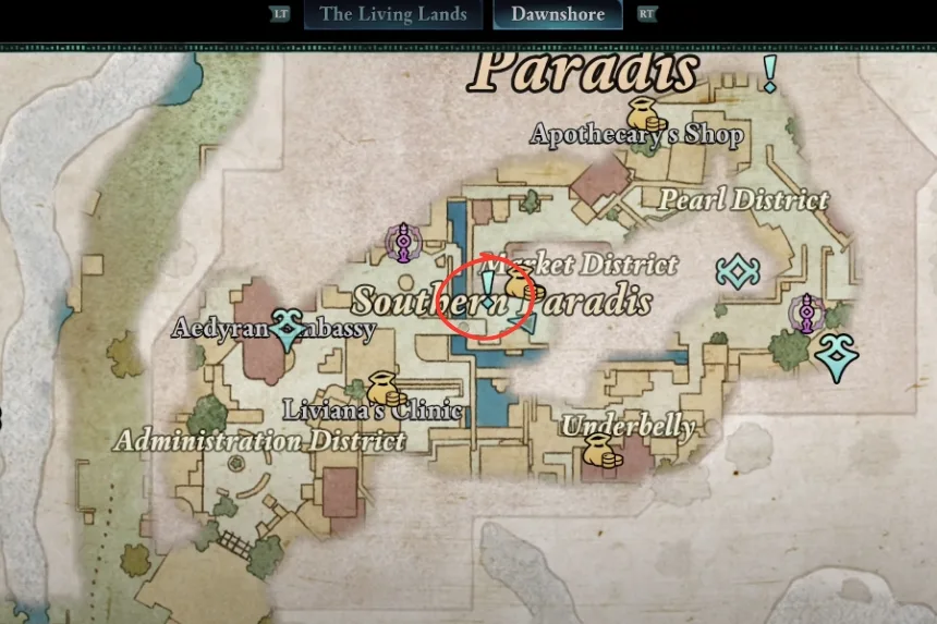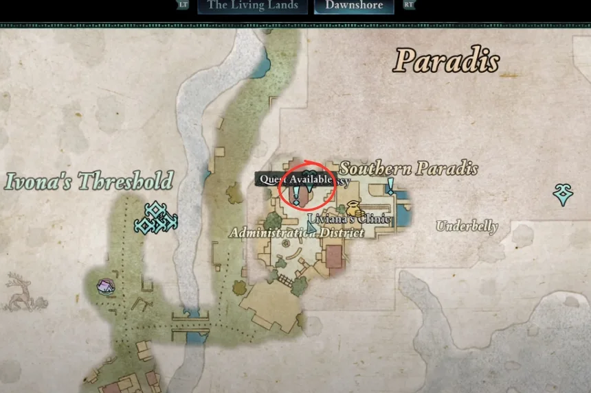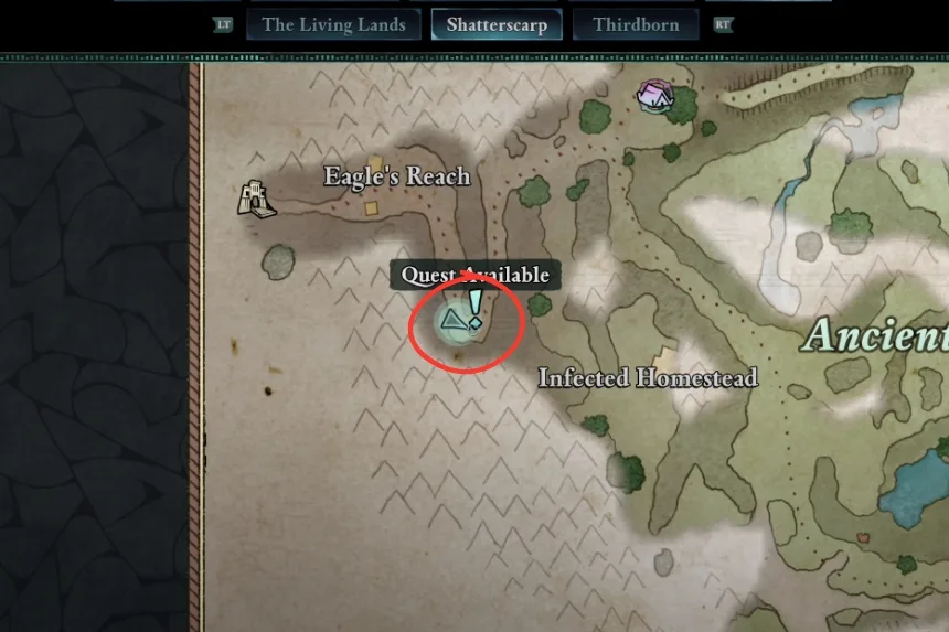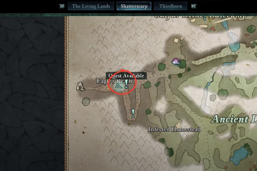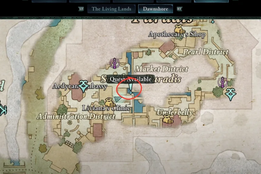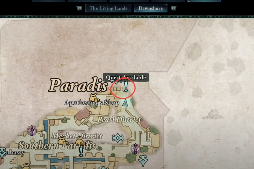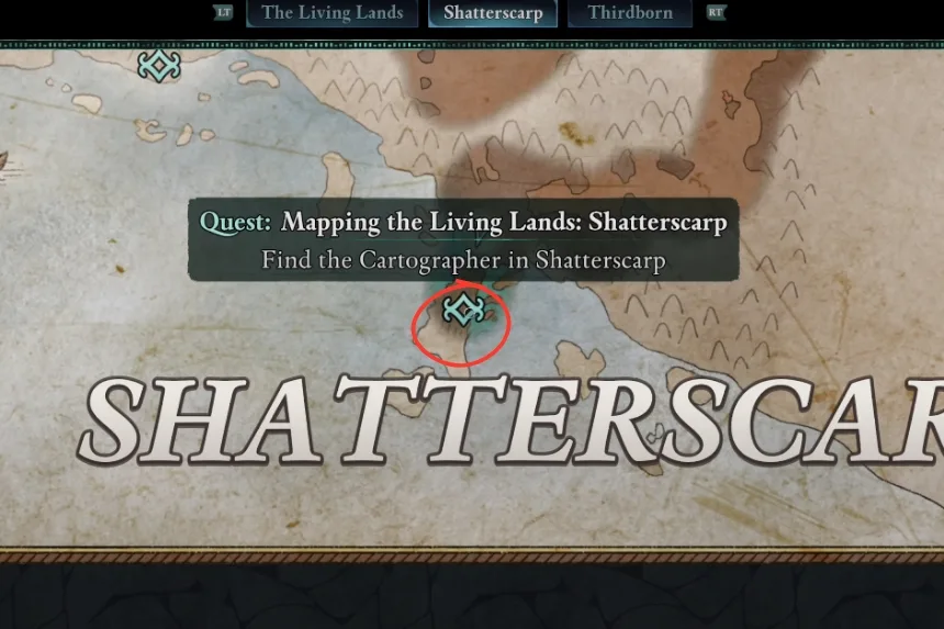 Rewards: Upon completing Mapping the Living Lands: Shatterscarp, return to Sanza at his emporium in Paradis. Handing over Wilfrith’s Map will conclude the quest and reward you with 650 Coins.