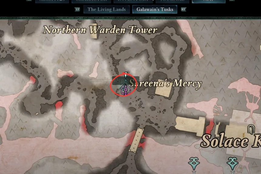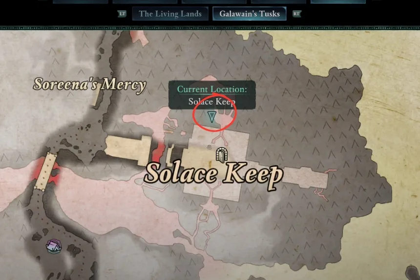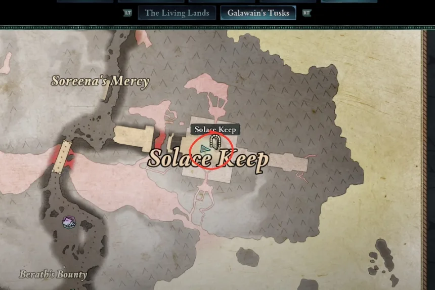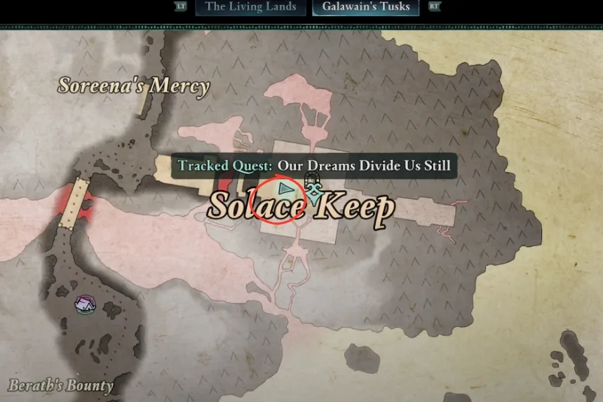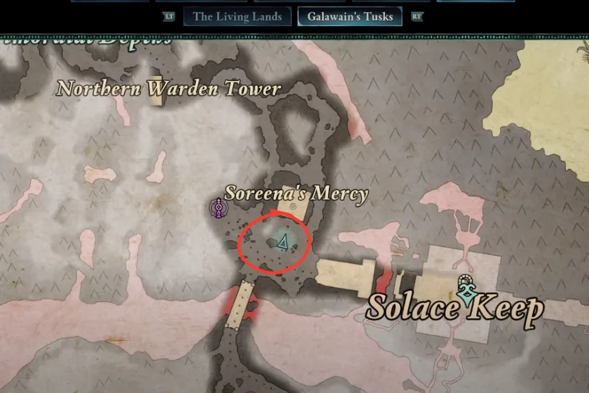 Starting Location: Near Soreena’s Mercy, northwest of Solace Keep, Galawain’s Tusks
