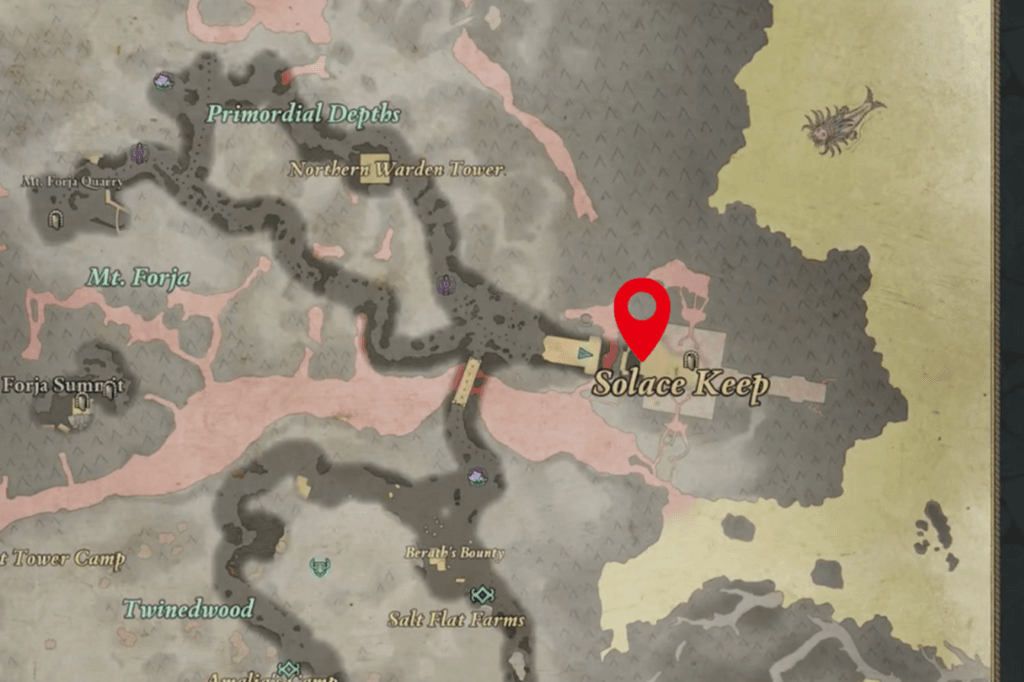 To complete the “Forged in Starmetal” quest, you need to find Forgemaster Dela. He’s located in Solace Keep, which is in Galawain’s Tusks. This area is one of the last places you’ll explore before the game’s ending, so even if you find the Starmetal early, you won’t be able to use it until much later in the game. Dela is in the Main Hall of Solace Keep, down the steps at the back. Talk to him and mention the Starmetal. He’ll get really excited and start talking about it. You can listen to everything he has to say, or you can cut him short – it doesn’t affect the quest. After his enthusiastic outburst, he’ll give you a choice: a Starmetal sword or a Starmetal arquebus.