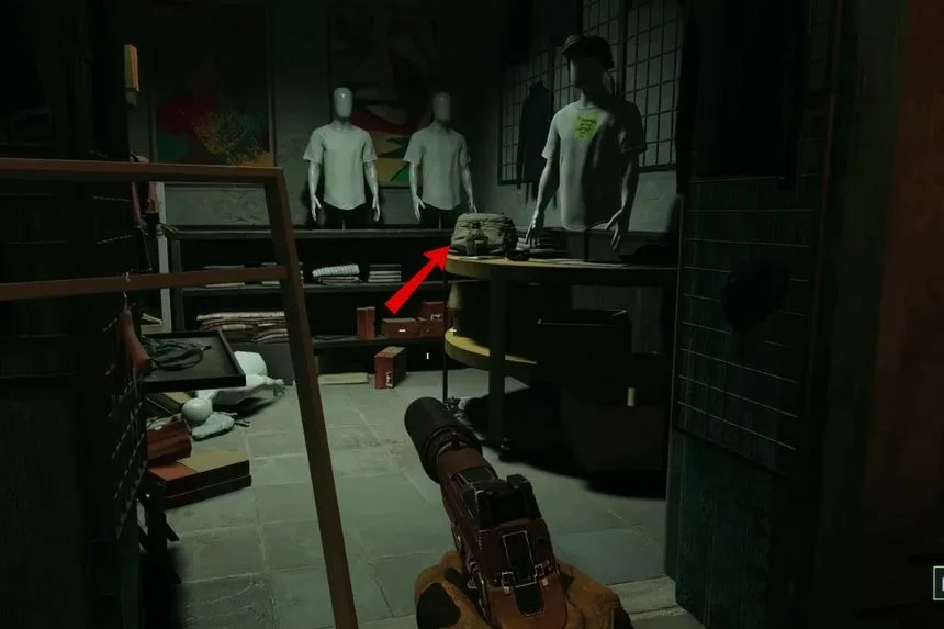 After the van explodes, move through a few enemy-filled areas until your squad mentions a helicopter leaving. In the next alley, look for an open store with mannequins in white shirts, the tag is on a table inside.