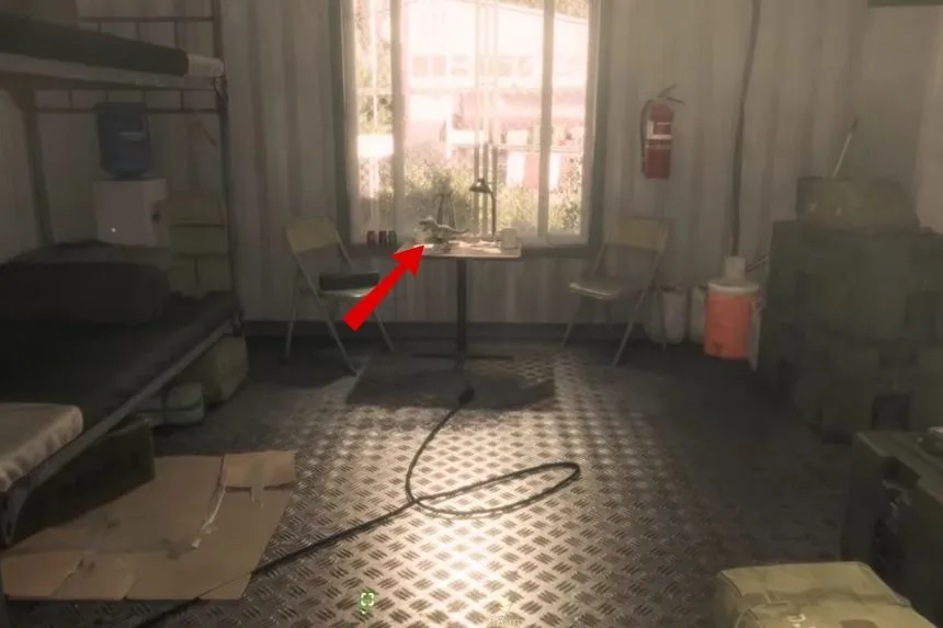 When the mission begins and you’re inside the building, turn around. You will see a small dinosaur on a table. Crouch and hold to pick it up and unlock the trophy.