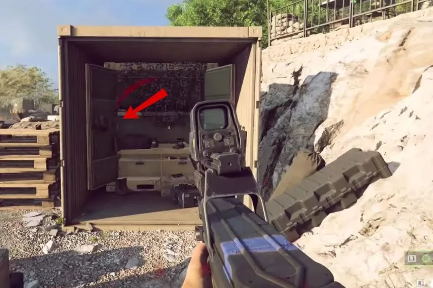 After you blow up the first AAA gun with C4, follow your teammate through the woods and clear the next building. Once you reach the area where the helicopter drops off reinforcements, look inside the right-side container. The dog tag hangs from the left container door, near some ammo crates, right before destroying the second and final AAA gun.