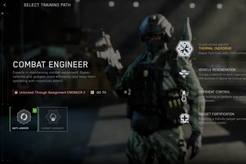 Training PathCombat EngineerIncreases repair and resupply efficiency for vehicles and gadgets.