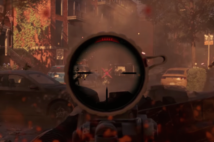 The ideal moment to do so is in the street combat scene when you have the option to position yourself on the second-floor balcony, which gives you a clear view of the whole street. From that position, you will see very well where the enemies are moving around in the open, and their heads will be easily visible. Change your rifle to semi-automatic mode, be patient, and take clean, steady shots. Do not hurry it up.