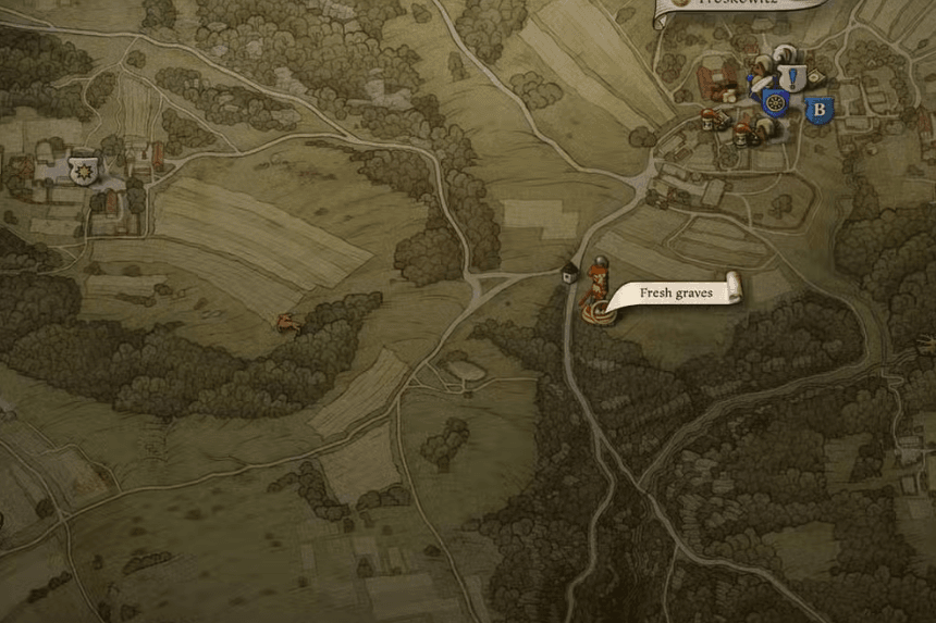 In Kingdom Come: Deliverance 2, a spade can be surprisingly useful for certain quests and other activities. If you’re in the Trosky area and need one, you don’t have to go far from Troskowitz. Just east of the town, you’ll find the Troskowitz Cemetery – that’s a great place to look for a spade early on.