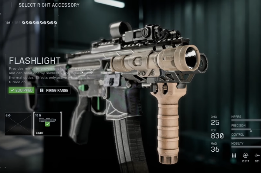 Use the Flashlight; it really improves hipfire more than you would think. You can pair it up with the Green Laser to give yourself an extra boost to hipfire, making you the most accurate at close range.