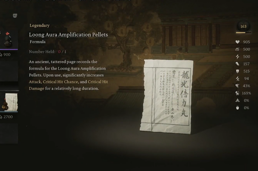 After completing Chapter 4, Xu Dog will start selling this formula. Just talk to him again once the chapter concludes. These give you a temporary increase to your critical damage, which means your big hits will hurt even more for a short time.