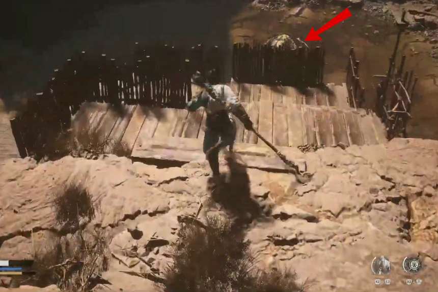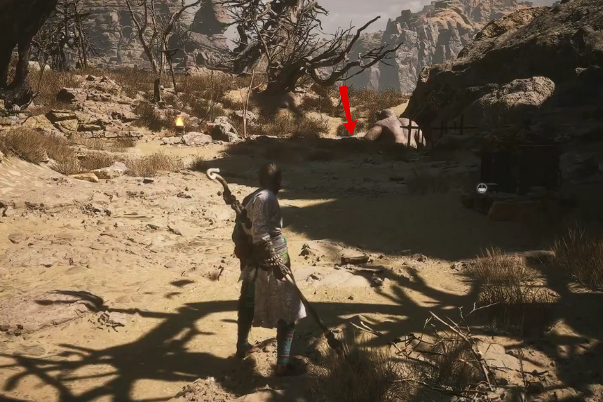 You’ll arrive at a big tree beside a house and take the path on the left side of the house. Go up the stairs, check the hut on the right, and open the container inside to get the Mirage Pill formula.