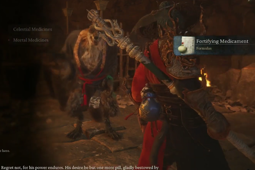 This formula becomes available for purchase from Xu Dog after you encounter him in the Cellar area during Chapter 2. Once you’ve met him there, he’ll add it to his shop. When you use this, it increases the Tenacity of certain staff skills, making them much harder for enemies to interrupt. The effect only lasts for a short time, but it helps you stay steady while casting or attacking.