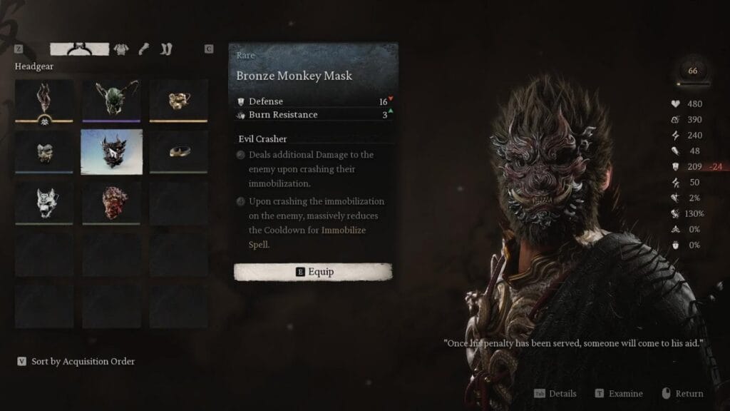 The Bronze Monkey Armor set offers a balanced approach for players seeking a versatile build. Crafted after defeating Elder Jinchi in Chapter 1, this set lacks unique mythical upgrades or special effects. Still, it boasts substantial two-piece and four-piece bonuses that synergize well with the immobilized spell. The two-piece bonus inflicts additional damage upon crashing an immobilized target, while the four-piece bonus significantly reduces the cooldown for immobilization when performing a crash. The arm guard also grants the ability to trigger finishers of light attack combos with light attacks following Evanescence. To maximize the set’s effectiveness, it’s essential to have sufficient damage output to consistently trigger the crash effect, making heavy combos a recommended strategy.