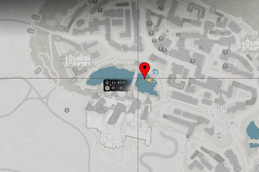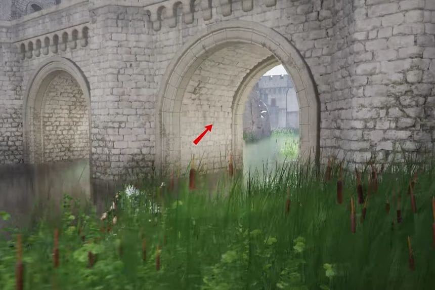 When you get to the Demeniss region, you can locate this place inside the main city. When you get to the fast travel point, go towards the bridge over the water. Jump into the water below the bridge. Swim to the middle section of the stone arch in the water. There is a small spot where you can climb up onto the wall.