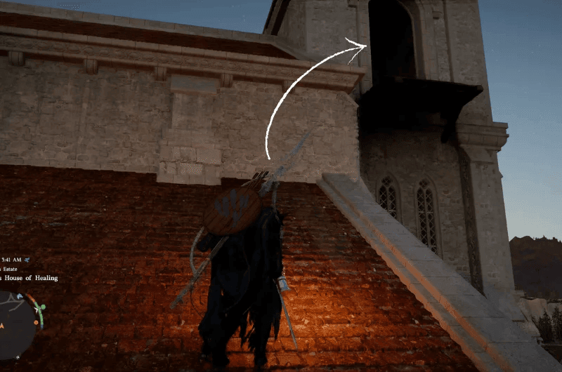 To get the Blackwing Leather Boots, you need to head to the St. Halssius’s House of Healing location shown in the above image. Then before you enter the house of healing go to the left side of the building and you’ll see a ladder.