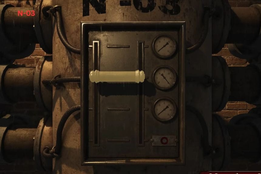 Go to the building with N-01 written on the metal gate. Head inside and start climbing the stairs. Keep going up till you reach the top, you will find the N-01 hydraulic pump terminal. Interact with it and pull the lever twice.