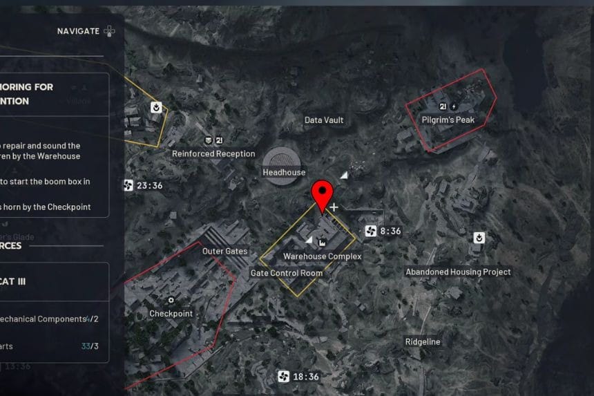 To complete this objective, you should go towards the Warehouse Complex and then move towards the far right side of the area, as you will find a tall radio siren tower there. Once you reach there, you should interact with the siren to repair it.