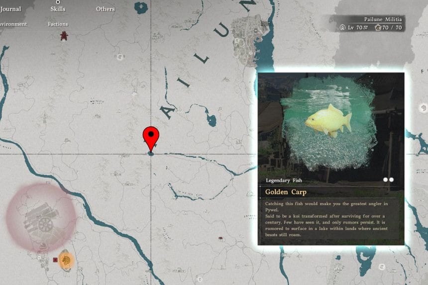 Golden Carp is only found near Pailun. Open your map and check the small water area beside the letter in Pailun.